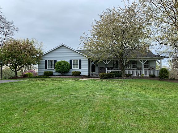 Beautiful sprawling ranch with welcoming porch set on 5.8 beautiful acres. Step into a spacious foyer w/ slate floor, large bright living room w/ floor to ceiling stone fireplace and vaulted ceiling. An open floor plan throughout and a magnificent dining room that fits a large table with sliding glass doors out to the elevated deck with built in natural gas hook-up for your grill. Open kitchen with new counters, sink and appliances round out this perfect entertainment space with 1 of 3 skylights in the home that bring in that natural sunlight year round. On the other side of the house is full bath with 2 bedrooms and a HUGE master suite. Master bedroom has room for separate living area or desk, other features include large walk-in closet, HUGE en-suite bathroom with jacuzzi & shower. Wait there is more! finished basement with another bedroom, full bath, family room, workshop area, storage, laundry area, and 1.5 garage for all your tools.