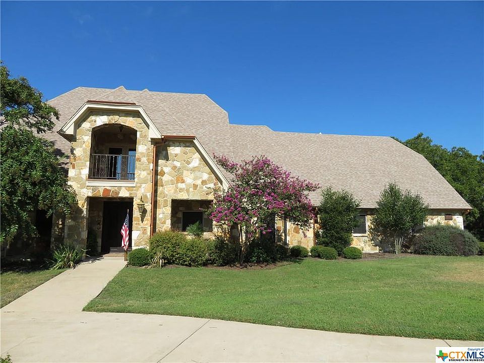 UNIQUE and GRANDIOSE, on a LAKE BELTON COVE! This custom-built home by Larry Lilly was on the 2007 PARADE OF HOMES, and has just about everything a house could want in a home. Upon entering, you are greeted with an inlay of the REPUBLIC OF TEXAS 1845. To the right is an office, and to the left is a bedroom. Straight ahead is the magnificent living room with a 25' ceiling and a stone fireplace with ammonites, fossils from the Mesozoic Age. A huge kitchen with 3 sinks, two D/W's double ovens, 6' SS refrigerator/freezer and a 6'x10' island with a 6-burner gas stove. The main bedroom is downstairs with a "safe room" (shelter) as one of the two closets. Upstairs is a loft, 2 bedrooms, 2 bathrooms, and a media room with an 82" TV, plus a kitchenette makes for a whole separate living area. Storage and special features abound in this home. A screened-in porch, a pool, and an outdoor grill are all there to enjoy. Nearly 200' of lake access across the back of this lot. A rare find!