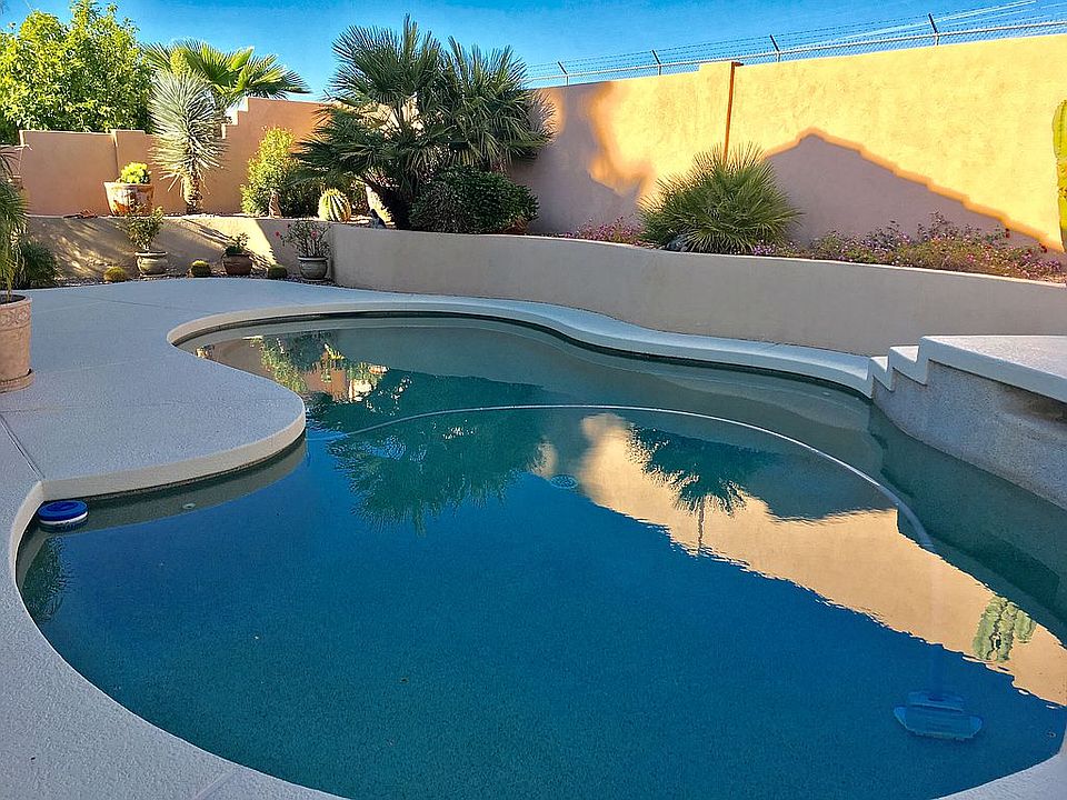 This property is NOT for sale or rent. Tastefully decorated throughout. Plantation shutters. Flooring replaced in 2017. Vaulted ceilings make rooms feel much larger. Ceiling fans. Gas fireplace. Beautiful backyard. Pebble-Tech heated swimming pool with water feature and Kool deck. Pool heater, filter and pump recently replaced. Backs to CAP canal for privacy. 2-car garage. Irrigation front and back w/controller in garage.