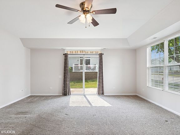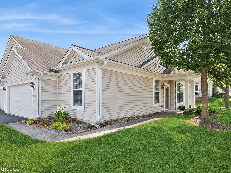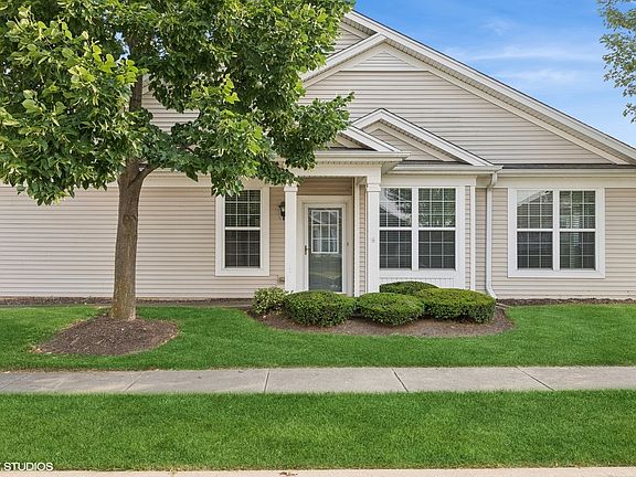 Now offering for sale this beautiful end unit Villa in the most sought after 55 Plus Active Adult Community in Illinois! This Albright model has a wonderful open floor plan with two bedrooms, two bathrooms, a painted two car garage and a patio with awning and privacy trees! The master bedroom has a trey ceiling, ceiling fan & freshly painted. Master bath has a double vanity, walk in shower with seating, a linen & walk in master closet! Newer furnace, brand new air conditioner installed July 2024 & just professionally cleaned! Come & enjoy maintenance free living in this fabulous community with a golf course, restaurant, pools, tennis courts, walking trails, fishing and so many more amenities/activities to choose from!