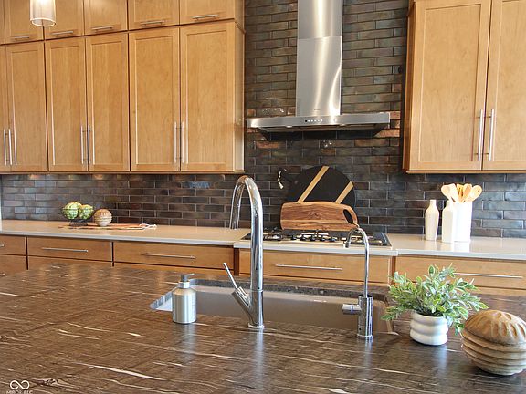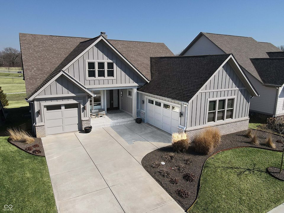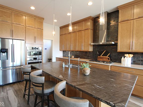Experience contemporary living with this thoughtfully designed home featuring premium finishes throughout. The kitchen boasts a leathered granite island, quartz countertops, stainless steel appliances including a built-in oven and microwave and a gas cooktop with stainless hood and an RO water system. Ceramic wood tile flooring enhances the kitchen's charm, while large windows fill the home with abundant natural light. The Great Room offers a cozy gas fireplace with built-in shelving and a raised ceiling, creating an inviting space for relaxation. The 3-season room, complete with its own gas fireplace, opens to a Trex deck for year-round enjoyment. Enjoy a state-of-the-art Triphase Technologies sound system, independently controlled in the Great Room, primary bed/bath, guest bath, 3-season room, lower patio, media room, and rec room. The walk-out basement is designed for entertainment, featuring a spacious rec room with an epoxy floor, wet bar, pool table, and access to a custom concrete patio. The basement also includes a theater room, bedroom, and full bath. A flex room with an epoxy floor offers additional versatility. The mechanical room provides ample storage space. Both garages feature epoxy-finished floors, attic storage with walkable access, and oversized doors for added convenience. Additional highlights include circulating hot water, a jacuzzi tub with a shower in the guest bath, a custom closet system in the primary suite, and cordless up/down blinds in the bedrooms. The pocket office, complete with a built-in desk and cabinetry, offers a perfect spot for keys, mail, and workspace needs. Enjoy tranquil views of the adjacent park and greenway, adding to this home's serene ambiance.