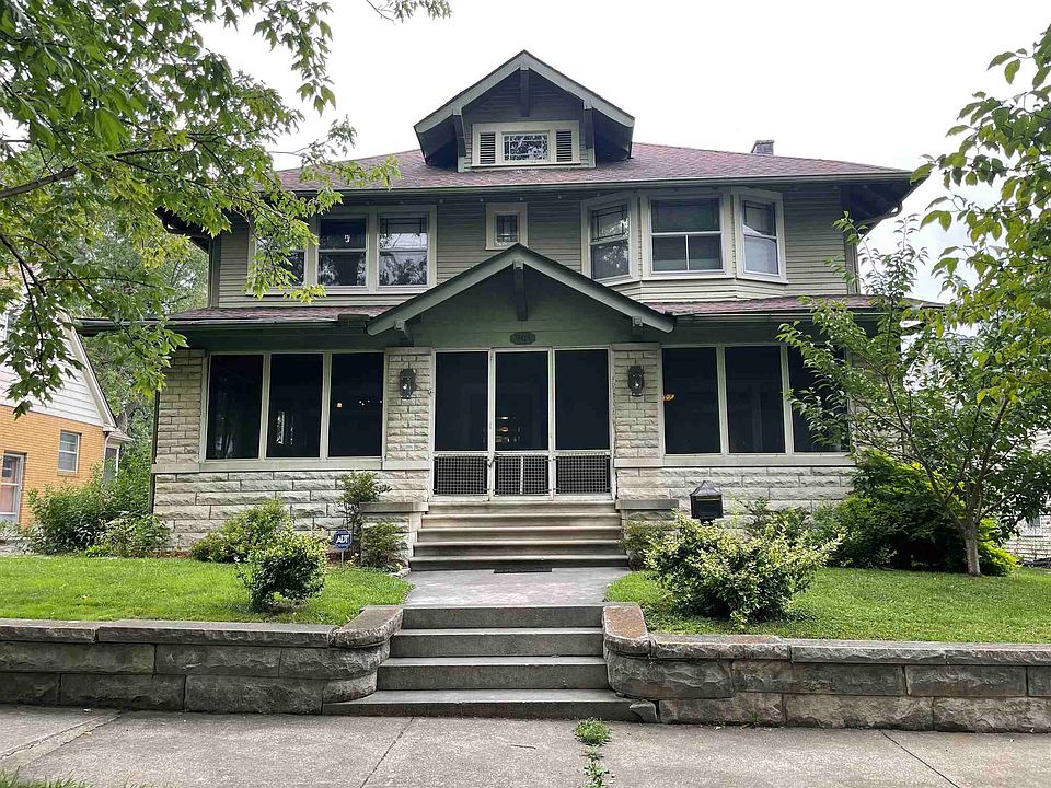 YOU WILL FIND THIS ELEGANT 3 BEDROOM, 2.5 BATH HOME NESTLED IN THE HEART OF BEDFORD'S HISTORIC DISTRICT. THE LARGE LIVING ROOM HAS A LOVELY FIREPLACE AND WONDERFUL WOODED CRAFTSMANSHIP ON THE CEILINGS AS DOES THE GRACIOUS DINING ROOM. THERE ARE HARDWOOD FLOORS THROUGHOUT ALONG WITH LEADED AND STAINED-GLASS WINDOWS. THE SCREENED FRONT PORCH IS AMAZING, AS IS THE COVERED BACK PORCH AND THE ADORABLE BACK PORCH ON THE SECOND LEVEL. THE LOT IS 60 X 180 WITH A NICE BACKYARD, AMPLE PARKING, AND AN 840 SQUARE FOOT DETACHED GARAGE. SELLERS REQUIRE MASKS BE WORN WHEN VIEWING. HAND SANITIZER WILL BE PROVIDED AT THE FRONT DOOR