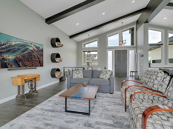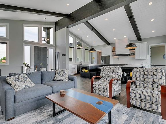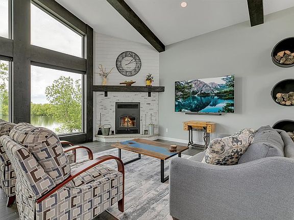 Custom contemporary living! All the modern conveniences without the hassle of building. This stunning home offers open-concept kitchen/living dining with vaulted ceilings, floor to ceiling triple paned windows with remote operated window treatments. The kitchen offers custom cabinets and hardware, upgraded appliances including gas range and custom hood. Private master suite with enormous walk-in closet and spa like bathroom. MF also features a real wood fireplace in the living room, guest powder room, laundry and mudroom just off the garage. The LL walk-out has floor to ceiling windows for the best lake views. Entertainment bar, theater room, 2nd master suite and walk-through bath, and 2 additional bedrooms. Enjoy the lake life with views from your backyard with approx 78' of lake frontage. A great place to enjoy fishing, paddle boarding, walking trails, and more!