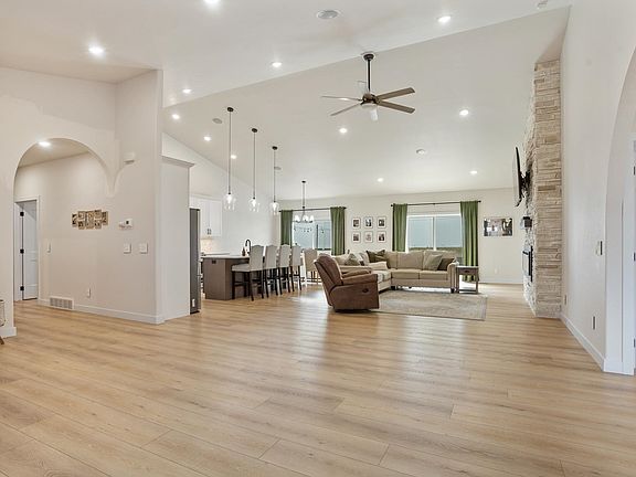 Make this one level showstopper yours! Here is your chance to own a better than new construction, extremely immaculate, high-end home built in 2020. It has the modern light & airy design we all love mixed with quality craftsmanship! The open concept main floor has vaulted ceilings, natural light galore, and bright and inviting. The living space has a classy & warm-toned fireplace for those cozy nights in and is open to the dining & the kitchen area. The gourmet kitchen has sleek white cabinetry, quartz counter tops, gorgeous pendant light fixtures, attractive marble backsplash, complete with newer stainless-steel appliances! Off the living room is a main floor walkout to the outdoor concrete patio area, gardening plots & lots of yard space! Down the hall leads you to the mud room / laundry room attached to the triple garage, which is heated, insulated & sheet rocked. Off the laundry / mud room is the primary suite! This suite is definitely “SWEET” with a classic white fireplace, primary bath with dual sinks, quartz counter tops, tiled shower with marble floor and to round out the suite, a spacious walk-in closet! On the opposite end of the home are 3 bedrooms, good-sized bedrooms and a full bath. The triple garage is finished with a floor drain & heated for your convenience.  The 4ft crawl space entrance is in the garage and has ample lighting for all your storage needs! This is a MUST-SEE stunner. Call an agent today to set up a showing!