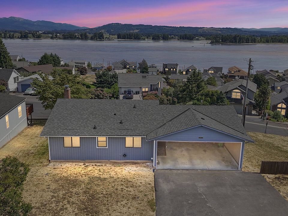 Experience breathtaking, panoramic views of the Columbia River and Mount Hood from this incredible daylight ranch—truly the perfect place to call home! Set on a spacious 10,000+ square foot lot, this home offers 3 bedrooms, 2 bathrooms, and 2,176 square feet of living space, including a finished basement and a dedicated theater room with built-in speakers. The inviting fireplace adds a cozy touch. Recent upgrades by the seller include a new roof with chimney flashing, enhanced attic insulation, fresh exterior paint, new gutters and drainage system, updated toilets and faucets, as well as new carpet, LVP flooring, and LED lighting throughout. The expansive deck and large yard provide an ideal space for seamless indoor/outdoor entertaining.