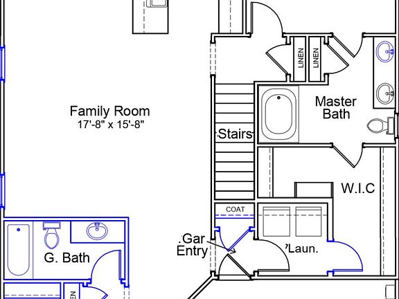 The Jasmine is just right at three bedrooms and three bathrooms. Hosting a guest bedroom at the main level, this space is perfect for when your parents visit. The family room makes for the perfect entertainment space and is open to the gorgeous kitchen, displaying staggered height cabinets in the color Sarsaparilla. Beautiful quartz countertops in this area are also offset by stainless steel appliances and tile backsplash. Off the exterior of the home is a covered porch, allowing you to soak in the sounds of nature and unwind after a hard day's work. The primary bedroom, as always with our Garden series, is conveniently located on the first floor. Upstairs hosts the secondary bedroom, which has its own bathroom.