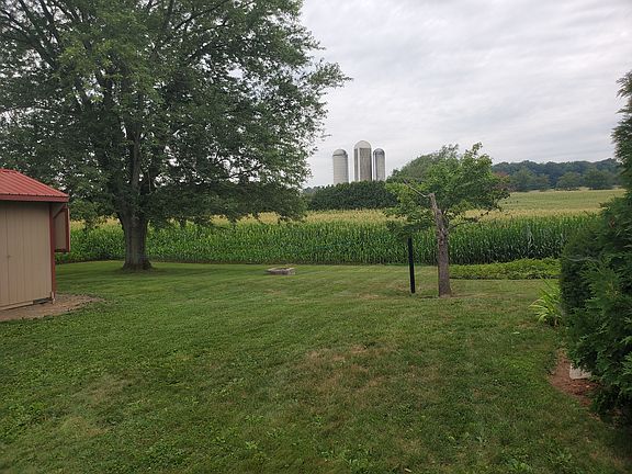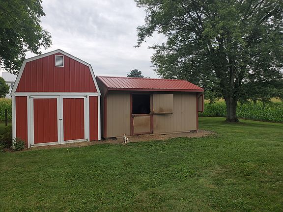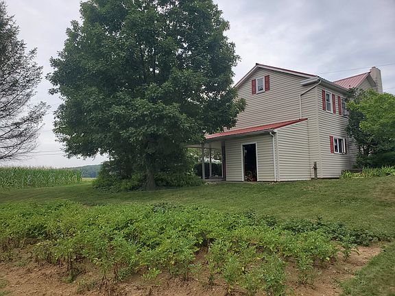 Country house with cream siding, barn-red decorative shutters, and a 5 year old barn-red metal roof. Front and rear porches with a small brick patio. Lots of storage with a large shed (12'x24') and a horse barn (10'x20'). Two miles outside of Martinsburg, close enough to see the fireworks at Morrison's Cove Memorial Park, but far enough out to have some elbow room. Enjoy beautiful sunsets while sitting around the brick fire pit under your massive old growth tree! When the weather turns colder enjoy the warmth and ambiance of the woodstove (or convenience of the oil furnace) while sitting in the cozy living room. When hosting, there is plenty of room for guests to park their vehicles with additional ground across the road from house. Three bedrooms upstairs with a den type room at the top of staircase. First floor has entrance/mud room which also serves as laundry room, kitchen/dining area, and spacious living room. Private well and septic.
