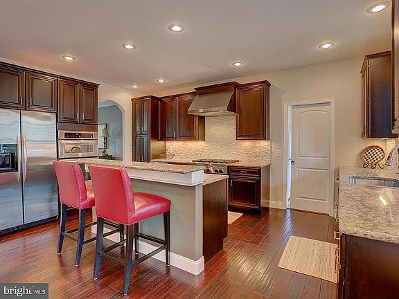 Located on a corner lot in the picturesque neighborhood of Veranda stands this 5-bedroom, 4.5 bath Colonial that will surely impress. Throughout this immaculate property you will find unique features and qualities including wood flooring on the main level, large open archways, and plantation shutters throughout. An open floor plan connects the gourmet kitchen to the living room and family room. The kitchen boasts a center island with a breakfast bar and granite counter tops. It is surrounded by stainless steel appliances, custom cabinets, and lots of open counter space. Appliances includes a 6-burner cooktop with hood, a dishwasher, and wine/beverage fridge, as well as a double stack full size wall oven and refrigerator. All lower cabinets have pull out shelving for ease of access. Adjacent to the kitchen is the spacious family room with gas fireplace, built-in cabinets, and access to the rear porch. A highlight is the inviting sunroom with high ceiling, gas fireplace and, large windows that let in lots of natural lighting. Other highlights on the main floor include a formal dining room, sitting area off the foyer, and a media room. The upper level is larger than the lower level and hosts 5 bedrooms and 3 full baths including the oversized owner''s suite. The owner''s suite features a coffered ceiling, crown molding, and a private bath with oversized walk-in shower for two plus a rainfall shower head and jetted ceramic tile tub, and a walk-in closet with floor to ceiling California closets. Also on the upper level is a library and a laundry room with a sink and wrap around upper cabinets. Two of the other bedrooms have a full set of California closets installed. The lower level is finished with large open space including a home theater a pantry room and a snack area with lots of storage. There are two wall installed fireplaces that provide both heat and ambiance. The home has two furnaces and two air conditioners. The lower level is completely dry but has a sump pump as well as a whole house water filter, a water softener and a radon mitigation system. The exterior of the property has a covered front and rear porch to relax and read a book and has a rear flagstone patio that is ideal for entertaining with a built in 12 foot collapsible umbrella. Other outstanding features include a security system with cameras, a video doorbells and an attached 3-car garage with a pull down to additional finished storage above the garage. Fully covered maintenance free gutters. High end copper landscape lights controlled by Lutron timers. A whole house vac with in wall hoses on all three levels. Consistent flooring on all three levels is truly maintenance free. House has fiber optic connection with wired outlets in upstair bedrooms . All downspouts are in ground and drain away from home. The outdoor sprinkler system can be controlled by app an can be programmed to water the entire lawn.