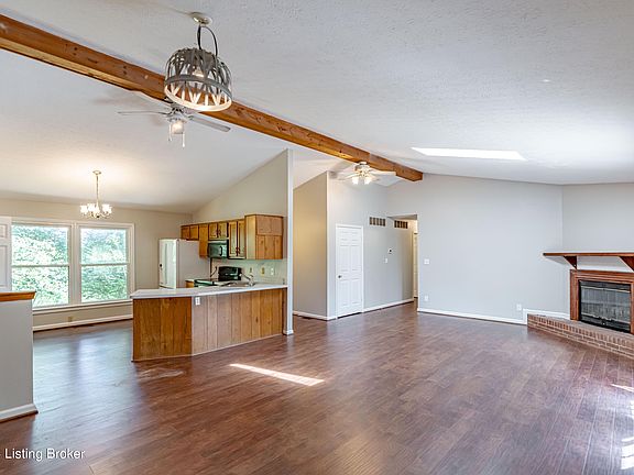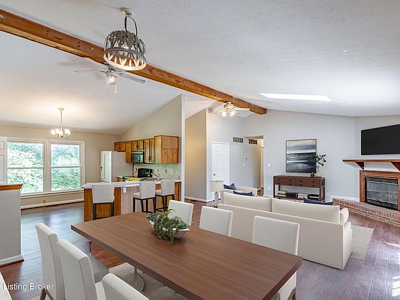 *Back on Market due to Buyer financing falling through.* Your dream retreat awaits! Nestled on nearly 10 acres of picturesque countryside with a pond, this charming 3 bedroom, 2 bath brick ranch offers a perfect combination of convenient location and privacy. This home is situated down a long driveway off the main road while the property is lined with mature trees offering a serene setting. You will love watching the deer and having your own private pond stocked with bluegill, bass, and catfish. Once inside the home you will notice the open floor plan and vaulted ceilings and skylights that allow natural light to flow throughout the home. The living, dining, and kitchen areas are all open to one another making this a great space to gather with guests. There is a pantry in the kitchen for storage and you will enjoy the breakfast bar countertop for additional seating and quick meals. As you make your way to the primary bedroom you will notice the en suite primary bathroom that offers a shower/tub combo and 2 huge walk-in closets. The common areas and primary bedroom all have new flooring and the roof was replaced in July 2024. You will be located just minutes from I-71 for a quick trip to La Grange or an easy commute to Louisville. Make sure you get a chance to see this home while it is available - schedule a tour today!