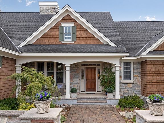 Hidden Lakes .87 acre waterfront walkout one-story built by Kyle Hunt. Features sweeping westerly views across Twin Lake, private sandy beach, open great room design, screened porch, exceptional owner's suite with large private bath and walk-in closet. The walkout lower level features three bedrooms, two full baths, study and spacious family room with walk-up wet bar. Exquisite fit and finish throughout.