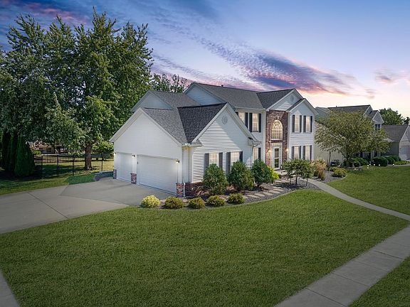 This beautiful home sits on a lushly landscaped corner lot in the convenient central location. The grand entry features a 2 story foyer with illuminating natural light from the custom arched window above the front door. It really is an impressive entrance. The sprawling main floor has a formal dining room, flex room, family room, kitchen, 3 seasons room, laundry room and a 1/2 bath! The kitchen features brand new stainless appliances (June 2021), hickory cabinets and a nice built in cabinet area off the eat in kitchen area. The family room has a cozy fireplace and built in bookcases. Mounted Tv above the fireplace can stay with the home. The sun room is a nice area of extra living space. The fully fenced backyard has an above ground pool. The upstairs has 4 LARGE bedrooms. The main bedroom has vaulted ceilings, a corner window, very large master closet and a full bathroom. The attached main bathroom has double vanity sinks, corner tub and a full shower with glass doors. The other 3 bedrooms upstairs are great sized and have lots of natural light!! The 3 car garage has a 240 volt outlet for an electric vehicle. The roof was installed in 2018 with a CertainTeed upgraded shingle(transferable warranty to the new buyers). Furnace and AC new in 2017. This is a wonderful home that is a must see!