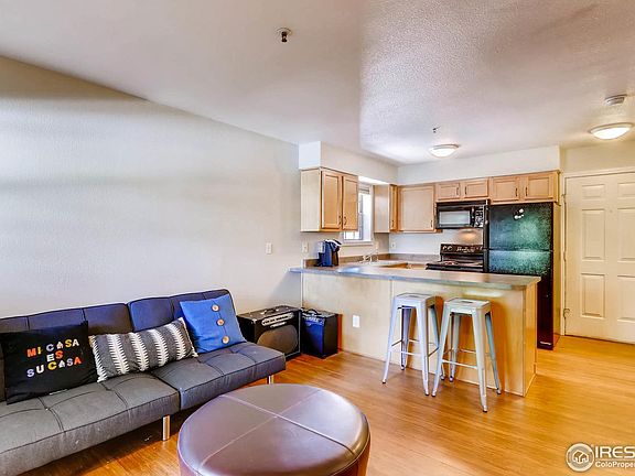 Great location at the NW corner of University & Broadway. Cozy 1 bedroom, 1 bath. Hardwood & tile floors. Kitchen is equipped with plenty of maple cabinets and good counter space. The Living room is east facing w/a wood burning fireplace & access to the balcony. One designated parking space & use of an assigned storage closet outside the condo. Across the street from CU. Near transportation, Pearl Street Mall and everything Boulder has to offer.