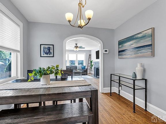 Welcome to this exceptional home in Rahway, offering 3 bedrooms and a host of inviting spaces tailored for modern living. Entering the foyer, the classic charm of hardwood floors and Tudor-style architecture welcomes you. The heart of the home is a spacious living area featuring a wood-burning fireplace, perfect for gatherings and relaxation. The main level includes 2 bedrooms, full bathroom, dining room, and a spacious kitchen with convenient nook ideal for a coffee bar. Upstairs, the 2nd floor transforms into a primary bedroom suite with a sitting area, office space, and a generously sized walk-in closet. The lower level boasts a finished basement complete with a family room, gym area, laundry room, kitchenette, and a full bar area with a sink, and a full bathroom . Outside, the front porch provides a welcoming seating area to enjoy the neighborhood's ambiance, while the backyard features an expansive paver patio an ideal setting for outdoor leisure. The fenced in backyard provides privacy. An ultra-spacious detached garage offers ample storage, complemented by a generous driveway providing plenty of parking space. Located in a prime location, enjoy easy access to NYC via nearby transportation, local shops, dining options, and cultural attractions such as Rahway Arts. Practical amenities such RWJ University Hospital, parks, and schools further enhance the convenience of this sought-after neighborhood. Experience the comfort and functionality of this versatile home.