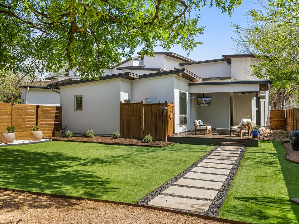 Perfectly poised on a large, park-like lot at the end of a cul-de-sac, this meticulously maintained 2018 built home exudes privacy, and a true opportunity for seamless indoor-outdoor living. Inside, high ceilings and abundant windows push ample light throughout the open living space. The spacious kitchen features beautiful cabinets, quartz counters, and a large island. The adjacent living room is open & bright, boasting sliding doors to the backyard. A courtyard, accessible from both the dining room and Master provides a peaceful place for coffee or al fresco dining. The first-floor Master is complete with an impressive, well-appointed bathroom with ample built-in storage & a generous walk-in closet. Doors lead to both the backyard and courtyard. Upstairs finds two well-sized bedrooms, a full bathroom and office space. The true star is the peaceful, park-like backyard. Fully fenced, the spacious backyard exudes privacy and serenity. Turf and low-maintenance landscaping were added to simplify caretaking. Both covered and uncovered deck areas provide more than adequate space to entertain. An oversized two-car garage boasts epoxy floors, two huge storage closets, as well as a large nook, the ideal space for an at home gym. The stunning backyard, massive two-car garage and abundant storage, this home is truly a one-of-a-kind find in Central-South Austin. Washer, Dryer and Ring Security Included. Some Furniture Negotiable.