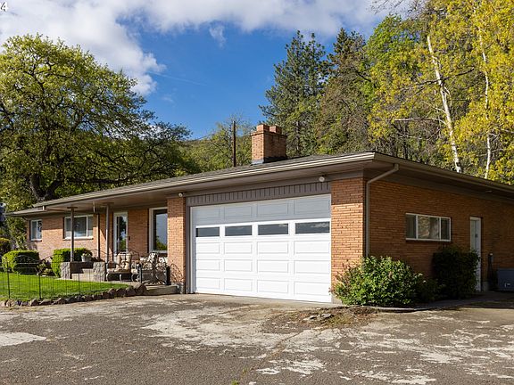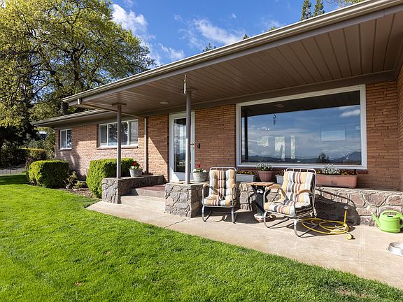 Escape to your own private oasis right in town! Nestled on the slopes below the Eagle Caves area, this amazing mid-century modern home boasts unparalleled tranquility and breathtaking vistas of the entire river bend valley. With 3 bedrooms, 3 additional rooms, and a bonus room in the basement, spaciousness abounds, while a wine cellar adds a touch of luxury. The two wood-burning fireplaces will make for cozy evenings indoors. Step outside to discover a private patio adorned with a mesmerizing waterfall, where you can bask in the sights and sounds of nature and wildlife. The expansive garden and barn with fenced pasture as well as an orchard with peach, plum, apricot and apple trees and a greenhouse offer the opportunity for sustainable living and gardening enthusiasts. The two-bay heated shop with 15' ceilings and tons of storage provides ample space for all your gear, toys, and work areas. There is also space to park an RV with sewer and power hookup. Rest easy with the assurance of a seller provided homeowner's warranty, a new roof with plywood sheeting and vents, and a new garage door. Wind protection ensures year-round comfort, while proximity to Eagle Caves recreational area offers endless outdoor adventures. Surrounded by open nature and teeming with wildlife, including deer and turkeys, this property promises a lifestyle of serenity and seclusion without sacrificing convenience. Revel in the captivating views from every vantage point, whether it's the living room, office, or bedrooms. Priced at tax assessed value, don't miss the opportunity to make this idyllic retreat your own!