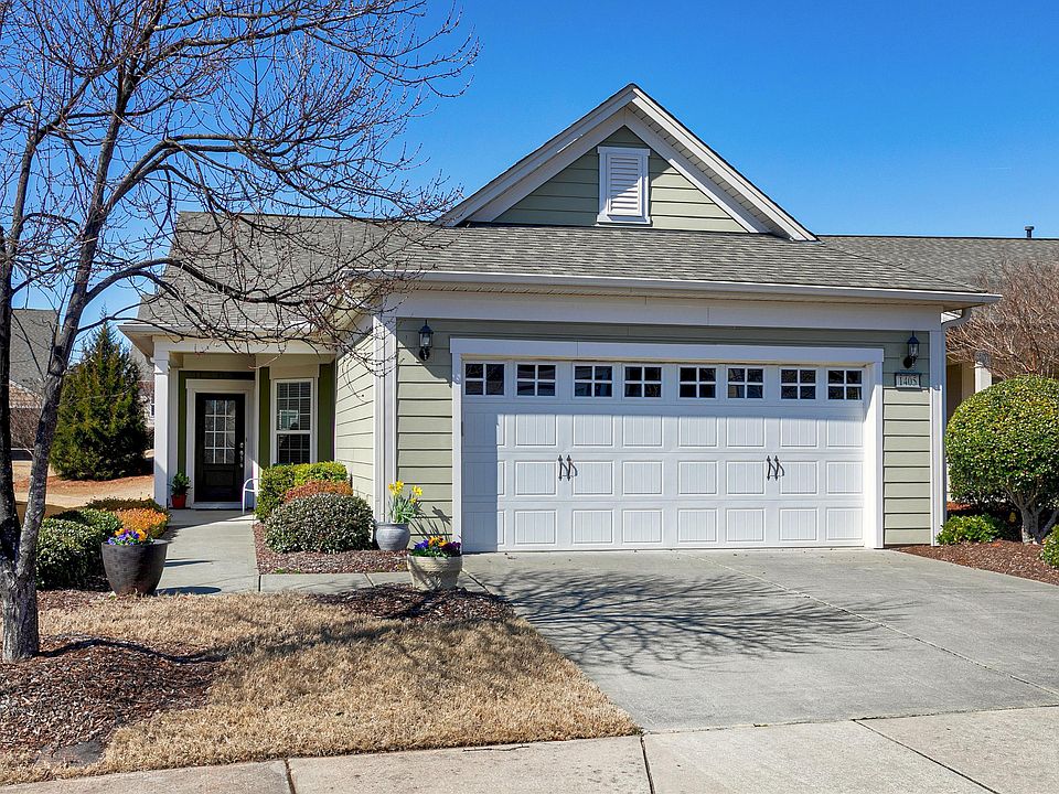 Immaculate and stylish ranch home filled with natural light! This freshly painted home features a covered front porch, large eat-in kitchen with plenty of cabinets granite counters, stainless appliances, newer refrigerator, and extra storage space for larger kitchen equipment. Gracious family room with space for dining area. Adjacent bright sunroom with large windows overlooking landscaped yard. Spacious primary suite with large ensuite bath and custom walk-in closet. Well appointed guest suite near second full bath. Convenient main level laundry room with add'l storage. Hardwoods in all the main areas. Large yard with mature landscaping offering privacy. Enjoy resort style clubhouse, indoor/outdoor pools, courts, fitness rooms, events and fun! (open house 3-16 postponed due to weather)