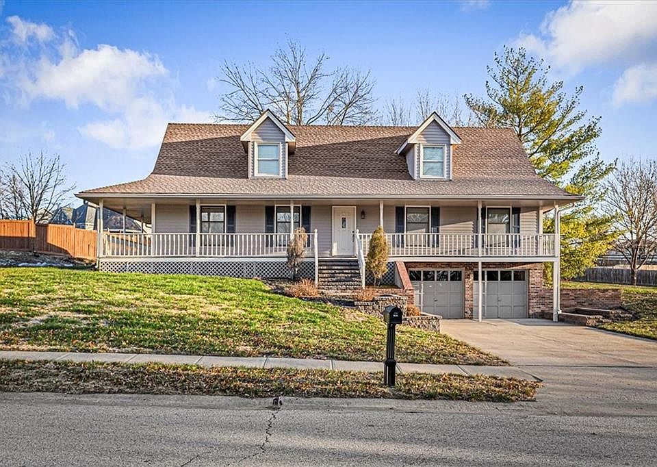 KEARNEY CHARMER in established Jamestowne subdivision! Situated on a large corner lot, this 1.5 story home offers a welcoming entrance with an expansive covered wraparound porch. Inside, you are greeted with a formal dining room which flows into the eat-in kitchen with island. The large great room boasts a gas fireplace, wainscoting and wood beams, The home is filled with gorgeous solid wood doors, wood trim and crown moulding for a warm and cozy feel. The first-floor master suite features a generous bath with garden tub, double-sink vanity, and shower. During the warmer months, the screened porch offers a peaceful place to enjoy the outdoors. The second floor boasts two nice-sized bedrooms with dormers and double closets, and a full bathroom between. The basement is a clean slate, ready-to-finish and stubbed for an additional bathroom if needed. Come take a look at this lovely home in a great neighborhood!