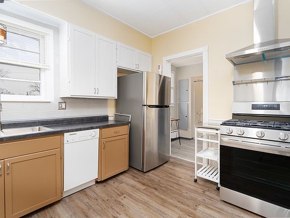 Sellers are asking for highest & best by 7pm on Monday, April 8, 2024. investment opportunity! This amazing, well maintained & nicely updated 2 unit is nestled on a prime lot across from Flink Field & park! With a covered front porch to greet you, the main level features: A sun-filled living room that's adorned by gleaming hardwood flooring, brick accent wall & electric "wood burning" stove, 2 spacious bedrooms (including the master bedroom with door that leads to the outdoor deck) plus den/3rd bedroom, Nice kitchen with 42" white cabinets, stainless steel appliances, subway tile backsplash & luxury vinyl plank flooring; Fresh paint throughout; The 2nd level offers 1 spacious bedroom & large flex room/2nd bedroom, kitchen with built-in cupboard & updated bath with gray vanity; Desirable 3 car garage with 2 overhead doors is perfect for parking; Spacious storage shed/workshop is attached to the garage; The full, dry English basement offers a laundry area with utility sink; Additional storage under staircase. Great opportunity for an owner occupant to live in one unit and rent out the other or a savvy investor! Boiler 5 years old.