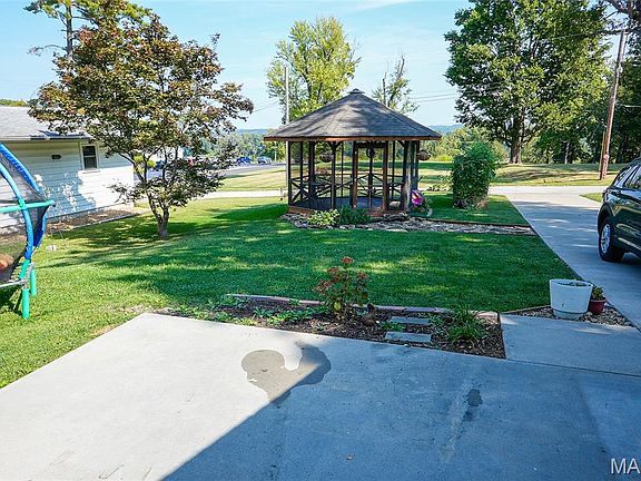 Check out this adorable 3 bed 2 bath with a view of the Missouri River by the Hummingbird Club in Washington! As you enter the house the first thing to notice are the gorgeous hard wood floors and ample natural lighting. The main living space has a fairly open concept that nicely flows from the living room through the kitchen and into the tile floored sun room which leads to the attached 1 car garage. The main floor also has 1 bedroom and a full bathroom. Head upstairs to find 2 more bedrooms, a full bath and additional storage areas. Basement access is through the kitchen and features a finished bonus room with a beautiful fireplace, and an unfinished laundry/storage area. The yard and outdoor features of this house are spectacular! You have a level yard featuring a gazebo, alley access to a newer private concrete driveway and the garage, built in gardens, plus an incredible view of the Missouri River (especially in the Fall & Winter)...also a dead end street behind the house! The owners completed several updates including: AC '21, Electric Panel '21, Windows '22, Re-lined Sewer Line '23, Water Softener/Heater '24, Garage remodel/fire safe updates, 1st floor bedroom remodel '23, Garden added in '24/25 and new ceiling fans in the upstairs bedrooms. All this plus a great location!! This one is a must see folks!