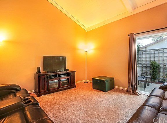 Meticulously Maintained Single Story Condo! Upon entering you will notice a gorgeous open floor plan which is great for entertaining. The living room is massive, offering new paint, fresh carpet, beautiful wood vaulted ceilings, and large windows creating great natural light. Just behind the living room offers a cozy dining area providing ample space for your favorite family dinners. The kitchen is substantial in size and has been completely remodeled. Recent upgrades include new tile flooring, recessed lighting, stunning chocolate mahogany cabinets, topped with granite counters and stainless appliances. Adjacent to the kitchen resides a laundry room, also offering similar flooring as the kitchen, fresh paint, new light fixture and white linen cabinets. As you walk down the hallway, you will be presented with two bedrooms, and a bathroom. The bathroom is a jack n jill platform, bestowing a single sink vanity, granite counters, custom matching mirror, new light fixture, and bathtub/shower combo.The master bedroom is sizeable, and proposes a large closet and single sink vanity, giving the owner privacy and separation from the shared bathroom. The condo has also been updated with a newer AC/Heating system and double pane windows. Other amenities include a private patio just outside of the dining area, two community pools, a detached single car garage, and numerous parking spots for family and guests.