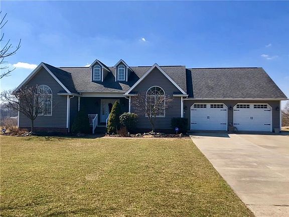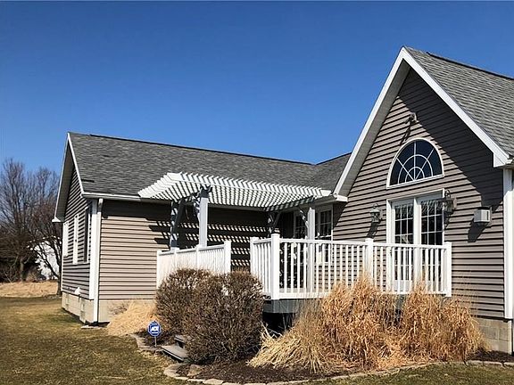 If a semi-rural location is where you want to live then come home to this beautiful 3 bedroom, 2 full bath ranch on 2 acres! The entryway is accented by skylights allowing the natural light to welcome you & your guests. Then in the living room we focus our attention on a brick fireplace & a double windowed door leading to the back deck & arched window providing a beautiful view all year long. The pergola adds shade & character for those summer evenings that are soon to arrive. The open kitchen area w/breakfast bar is ideal for entertaining. The maple cabinets, stainless steel appliances & granite countertops are tastefully done. The corbels add an attractive design element! The 1st floor laundry room provides extra closet space. The master suite is very spacious w/jacuzzi tub, shower, storage closet & walkin closet! Solid oak doors & trim throughout. Endless possibilities in the ready to finish full basement. 2 car attached garage & shed are a couple extra desirable features!