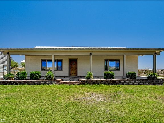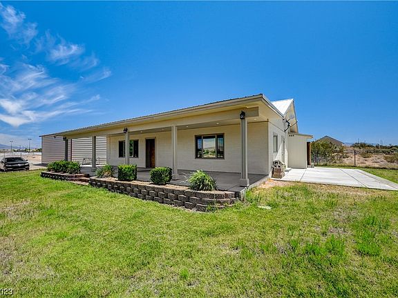 This home sits on 3.93 Acres and is completely fenced. Large 30x30 shop is any man's dream. Home is situated to enjoy views of Red Rock. Beautiful wood laminate floors, recessed lighting and white beam ceilings welcome you inside. French doors lead out to the patio. Lovely cabinets in the kitchen, under counter lighting as well as recessed lighting, built in microwave, center island, dining room table has hide away seating. Laundry room off the kitchen with a wall of storage cabinets and a laundry folding area. The 3 bedrooms have carpet, recessed lighting and tasteful modern ceiling fans. Two tone paint in the primary bedroom is soothing earth-tones, walk in closet. Both bathrooms are impeccably tasteful with walk in showers, custom raised sink bowls, dual shower heads and wood laminate. The interior doors are custom, knotty pine. Out on the patio, scored concrete creates large tile affect which continues around the home. Covered front porch, with plenty of room to sit and relax.