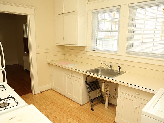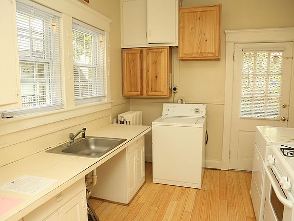 This inviting 3-bedroom, 1-bathroom home offers classic character with modern convenience. Inside, you'll find hardwood floors, unique windows, and spacious closets. The kitchen comes equipped with a refrigerator and natural gas stove, plus a full-size washer and dryer for added ease. Outside, enjoy a wide front porch perfect for relaxing, off-street parking, and mature landscaping that enhances the home's historic charm.