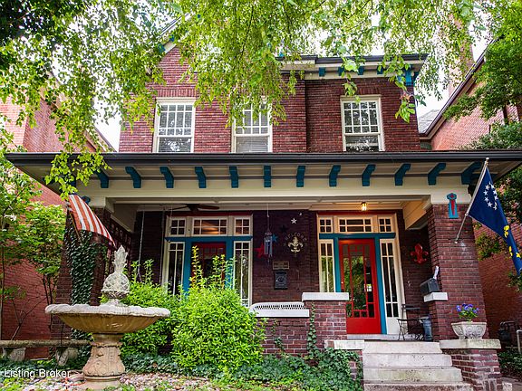Don't miss this opportunity to buy this fantastic, historical gorgeous turn of the century three story brick Victorian in Louisville's most heralded neighborhood—the Highlands. DRASTIC Price Reduction. Owner has the bid to remodel this lovely home back to its original duplex set up. Your perfect home in the best location in the city and rental income too. Highland Avenue is an iconic street; 1405 Highland Ave is not just a home, is not just a renovated Victorian but also a lifestyle in a highly sought-after neighborhood location with soaring values. Historic Highlands home available. Don't miss this unique opportunity. Please schedule showings through Show This amazing home was rehabbed in 2006 by the previous owners and updated again by one of the country's leading experts (Professor) on historic preservation from 2016 to 2019 using Architectural Salvage to find missing pieces of craftsmanship. Updates include one new HVAC (1) system, plumbing, electric, the two and half bathrooms, a modern kitchen, and energy efficiencies were added as well. The ground floor living areas are a craftsman's dream with beautiful refinished inlaid floors throughout. The foyer, living room, and dining room have gorgeous parquet floors. This floor has three amazing grand fireplaces with uniquely beautiful historical details. The fireplace in the video/dining room has a working gas hearth. The updated kitchen includes new tile flooring with stainless steel GE profile appliances and craft made cabinets windows on two sides. The former "mud room" has been renovated with shelving added and with the addition of an armoire is the 4th bedroom. It could be a great place for a music room! This room also has the entrance to the cellar. The entire front of the house has been painted with chromatic colors. The freshly painted front of the home's massive, covered porch with swing is perfect for people watching while enjoying the bubbling fountain in your front yard. The second floor offers three bedrooms and two full bathrooms. The master bedroom has natural light coming in from the North and South sides of the room with another cast iron fireplace for cozy comfort. The master bath has marble flooring, double sinks, a Jacuzzi tub, and a separate stand-up glass enclosed shower. The house also provides an area just off the master bedroom that could be a porch on the North side that could be finished or enclosed in glass to extend the square footage of the bedroom plus a small closet. .The second bedroom is exceptionally large, it has floor to ceiling custom shelves perfect for your library, and a craftsman fireplace. The third bedroom has been used as an office in the past but as the third bedroom offers a contemporary wooden barn door closet for lots of storage. On the third floor, the owner has added the 5th bedroom with an entire additional adjacent room with closets tastefully done with historic details. Enjoy the beautiful outdoors in your privately fenced back yard; where there is room enough for badminton, croquet, volleyball or simply entertaining. Although built in 1900, the home offers energy efficiencies: the metal roof was coated a thick substance called "umbrella" white to deflect the sun and reduce energy costs along with lots of large trees in the front. Another extra featured is that with high ceilings, central air on the first floor is unneeded with fans placed in four of the first-floor rooms, three in the second-floor rooms and one on the third floor. Call the Highlands "weird", independent, fun, nutty, historic, and one-of-a kind neighborhood with the greatest variety of restaurants, places of worship, diversity, tolerance, live music, walkability, bike-ability and dog walker paradise. It's just a short commute time to downtown work or museums and colleges. Whether it is Fodor's or USA Today, the Highlands is ranked as one of the best urban neighborhoods in the nation right up there with Greenwich Village in New York or Haight Asbury in San Francisco with the most painted ladies and ranking fourth behind San Francisco, New Orleans, and Miami Beach. But you don't have to pay millions of dollars to live in this historic Victorian of craftsmanship, pride, and value. Make 1405 Highland Ave your home and enjoy the Highland lifestyle. There are a few caveats with this property, In its present use as an BnB the furniture and fixtures in the home are not included but are negotiable, and the baby grand piano is also not included but negotiable.