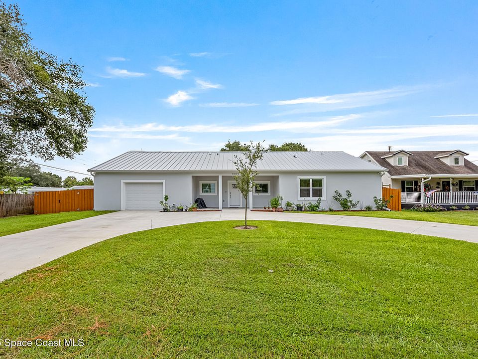 Built in 2024, offering 4 beds/3 full bathrooms, and just over 2,000 sqft. Designed with family and gatherings in mind, the open floor plan features high ceilings, recessed lighting throughout the ENTIRE house, and a stunning kitchen with granite countertops, 42'' cabinets, and a large island that seats up to 7. TILE flooring runs through the entire home, the METAL roof and IMPACT GLASS on each window and doors provide peace of mind during hurricane season. The fully fenced .40-acre lot includes a circular driveway, quiet dead-end street, and ample backyard space for a future pool. Only 30 minutes to the beach and 50 minutes to Orlando's theme parks, this home blends modern comfort with a welcoming location.