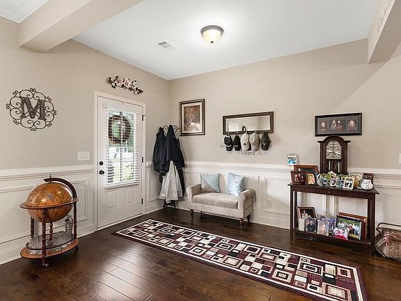 Move in ready, one level 4 bedroom, 2 bath home situated on a large private lot. This wonderful open floor plan features a dining, living and kitchen combination. The Living Room boasts stunning coffered ceilings and a stone fireplace. The spacious Dining Room and foyer feature custom wainscoting. Large Kitchen includes granite counter tops & stainless steel appliances, great working space and Breakfast bar in addition to the Breakfast Room. This home contains hardwoods throughout Great Room, Dining Room & Kitchen. Expansive Master Bedroom suite with large vaulted tray ceiling, double vanities and his and her closets. The opposite side of the home features 3 sizable bedrooms and shared bath. Outdoor entertaining and relaxing is a breeze on the large rear covered porch, with paver patio and fire pit overlooking the very private oasis backyard.