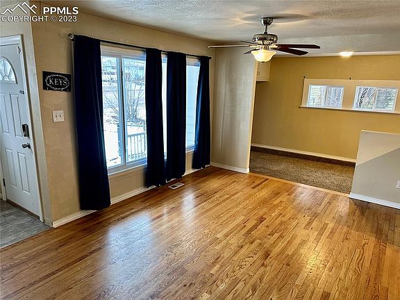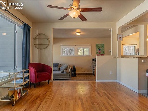 Lovely modern ranch home minutes from Ft Carson. Well cared for with fully updated bath and kitchen, detached 2-car garage, original attached 1-car garage was converted (by prior owner) to additional living space. 3 bed, 1 bath all on one level. Easy access to COS airport, powers corridor and I-25. Plenty of off-street parking with 2 driveways. Make this lovely house your home.