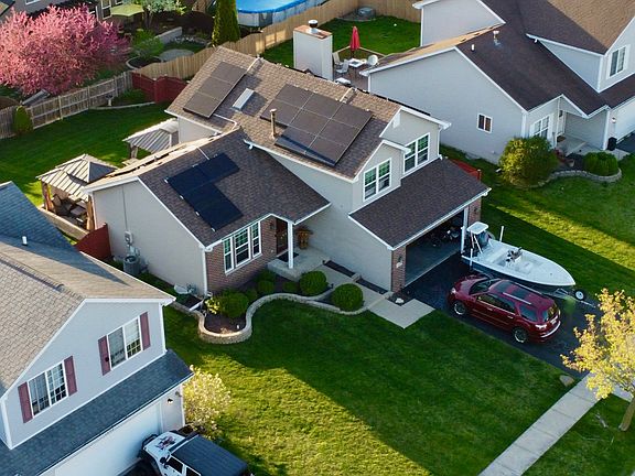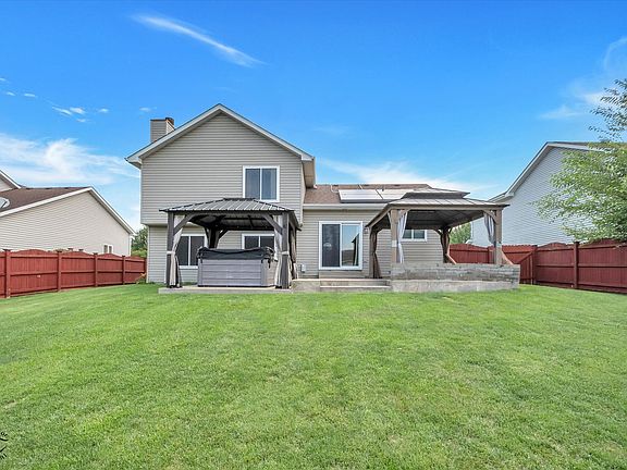 Back on the market at no fault to the sellers! Beautiful Quad level home in Eagle Ridge Subdivision with a brick front and an extra large patio in relaxing backyard. This is 3 bedroom and 2.5 bath with Vaulted Ceilings and a finished basement. Eat in kitchen with beautiful cabinets, Corian counter tops and tile backsplash (2021), wood look vinyl flooring, and all appliances new in (2021). Big Family Room on lower level with gas log fireplace, laundry closet with Washer and Dryer on lower level by family room. Windows throughout home and slider off kitchen replaced in 2020. Furnace and A/C (2017). Roof (2017) and Solar panels were installed in 2021 and the sellers have a very low electric bill. Hot Tub and two Gazebos are staying in the fenced yard. There is also an adorable shed in yard for extra storage. There's a custom pull down screen door on the garage so you can hangout outside bug free! This home is very clean and it's now available for you to make it your HOME and it's ready to move right in!