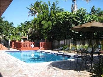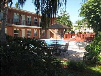 Fabulous Melrose Place style community surrounding the pool with entertainment deck area and BBQ. This classic stylish ground floor 2 bedroom / 1 bath corner condo is remodeled and is light and airy with tile floors throughout, granite kitchen countertops and has a large storage room. Unit has 2 assigned parking spots. Laundry facilities in complex, bicycle racks and gated entrance. Close to SE 17th Street, shopping and restaurants and major airports.