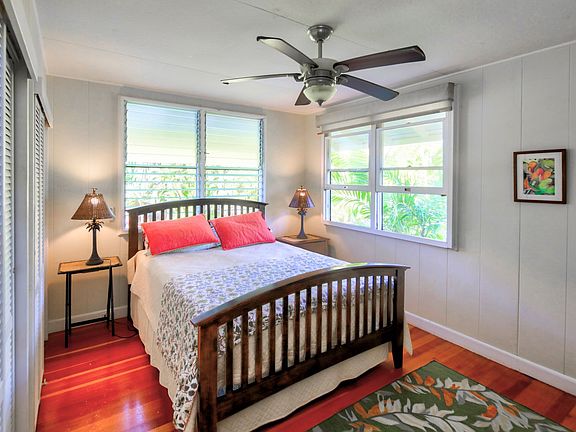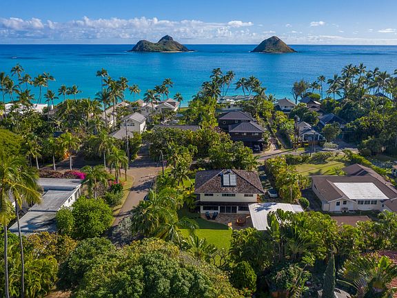 Please note fixed lease must end on 11/30/2025. Located across the street from a 100-yard-long ocean access path and just a 10-minute walk to the beautiful Lanikai Beach entrance. You can walk two minutes to the water, where you can launch your kayak or simply enjoy the sunset or sunrise. This house on Mokulua Drive radiates classic Hawaiian charm. The front and back lanais encourage indoor/outdoor living and make the most of a spacious yard lined with tropical palm trees and native plants, enclosed by a rock wall for privacy and security. An outdoor covered cabana can be used for dining and drinks at the custom tiki bar or relaxing in the shade on a hot day. Upstairs, three bedrooms each have queen-sized beds; the "bunk room" has three single beds. The ground-floor bedroom contains a double bed. The four upstairs bedrooms are equipped with A/C. The spacious kitchen includes a dining area. Fiber optic cable provides fast Wi-Fi throughout the home. Kailua town, with its shops and restaurants, is just 2.7 miles away. Lanikai's 2.4-mile-long "Loop" offers a scenic path for walking, running, and biking, as well as Lanikai park's basketball court and play structure, and entry to the beautiful "pillbox" trailhead. The house is 5.4 miles from Kaneohe Marine Corps Base, 21.6 miles from Joint Base Pearl Harbor - Hickam, and 1 mile from Buzz's Restaurant and Kailua Beach Boat Ramp. The home is fully furnishedall you need to do is unpack your suitcases, move in, and enjoy. Sorry. No pets and no smoking. Water, sewer, and electricity are separate. Please note that leases must be at least 30 days long and cannot extend beyond 11/30/25. All prospective tenants above the age of 18 must fill out an application. Credit check required.