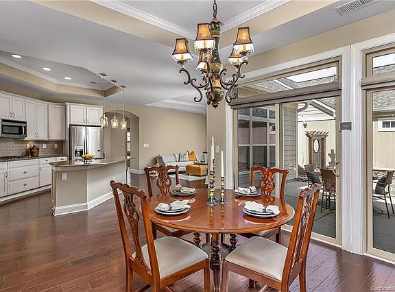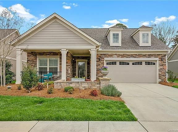 This move-in-ready ranch-style home is set in the 55+ community of The Courtyards of Marvin. It delivers the versatility and freedom that you expect! A split floor plan offers private interior living. Entertaining is effortless from the gourmet kitchen to the expertly designed, north-facing outdoor living space. Retreat to beautiful outdoor living! Enjoy the secluded porch, and patio. Extended entertainment area, an exquisite element, and no maintenance make living easy. The impeccable interior offers perfectly appointed modern features like recessed lighting, custom built in wall unit, hardwood floors, gourmet kitchen with quartz counter tops, and stainless steel appliances. This is a must-see living experience. Clubhouse and pool are just a few community amenities. Low maintenance exterior, captivating curb-appeal to the open-concept, there is plenty of luxury for you to enjoy!
