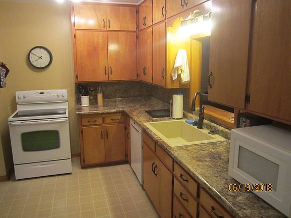 This clean, comfortable home features large country kitchen w/eating area w/range and dishwasher, new counters & kitchen sink, large family room w/freestanding wood burner, bath, 2 BRs, MBR w/3/4 bath & WI closet, sliding doors to super big deck, nice décor throughout and formal living room.The home features permanent vinyl siding, full storms & 2010 roof. Other features include great landscaping, really big back yard for kids, garden & etc. 28X32 garage w/electric & cement floor & another 16X24 garage.