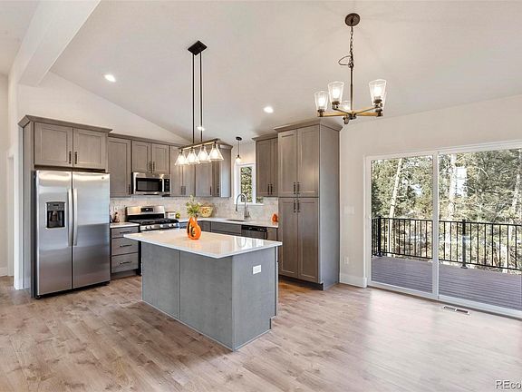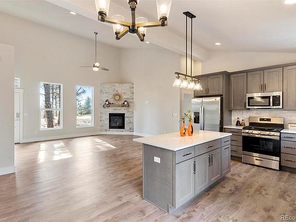 for natural light, views of Mountain vistas, sky & forest. Spacious Great Room w/ Nat Gas Fireplace, Rustic Wood Mantle, clean, modern tile accent surround. Woodgrain durable Luxury Vinyl Plank Flooring throughout is waterproof, easy to maintain & perfect for the mountain lifestyle and pets. Real wood Birch Cabinetry, Kitchen features Soft close Doors & Drawers, Roll-Outs, Tall Pantry, SS GE Appliances, Refrigerator, Dishwasher, Gas Range, Microwave, Kitchen Island, Quartz Countertops, Pro style Work Station SS Sink & Faucet w/ accessories, Marble tile Backsplash Spacious Master Suite w/ Free standing Shower, Double Sink Vanity, Gorgeous Bathrooms w/ large format tiles showers, extra deep tub, tall linen cabinets for tons of storage. Laundry Room w/ Utility Tub Sink, Trex Deck, Extra large conditioned Crawl Space w/ Exterior access. Captivating Mountain Community has Ponds, Dome Rock, Florissant Fossil Beds Nt'l Monument Park, Mueller State Park, Wolf Sanctuary, Cripple Creek, WP all close by. Hour + to Breckenridge & Buena Vista. World Class Outdoor Recreation region abounds, Move Right In!