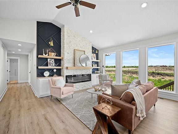 August Special; Seller is offering a $7500 incentive!! Discover contemporary luxury in this new ranch home nestled in Grimes' sought-after Heritage Development. With 4 beds and 3 baths on the main level, this home seamlessly combines convenience with elegance. The living room features captivating floor-to-ceiling windows, a cozy fireplace, and vaulted ceilings, creating a welcoming atmosphere. The kitchen is a chef's delight with quartz counters, a farmhouse sink, and a spacious island, complemented by a dining area perfect for gatherings. A mudroom and laundry room add practicality to daily living. The master suite boasts a lavish ensuite with a walk-in tile shower and generous closet space. The finished basement offers additional living space with a family room, wet bar, bedroom, and bathroom, along with a versatile room for your needs. Outside, a covered back deck provides the ideal spot for outdoor relaxation, while a 3-car garage offers ample storage. Experience modern comfort and sophistication in this exceptional home. All information obtained from Seller and public records.