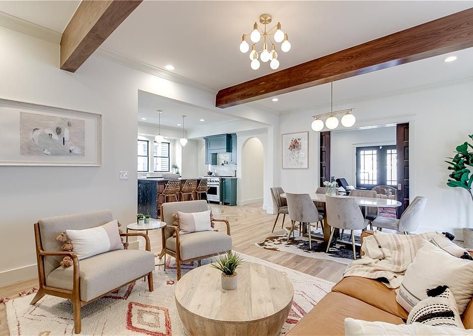 This 1909 Craftsman has been stunningly restored, paying homage to the home's historic character while incorporating modern conveniences. Each beautiful space has been carefully crafted to maintain a classic feel. With walnut built-ins, original pocket doors, oversized windows allowing an abundance of natural light, and Art Deco style lighting, this home is truly a one of a kind gem. The chef's kitchen is equipped with high end GE appliances, and has ample storage space with gorgeous custom cabinetry and a walk in pantry. The living and dining spaces are endlessly inviting, with warm natural woods and an incredible cast stone fireplace. A bar/media room provides a private second living area, and opens to an oversized deck with outdoor kitchen. The primary suite is true oasis, with double pedestal vanity and huge clawfoot soaking tub. An upstairs flex space features a second laundry space, built in desk, and room for a third living area! This home is a rarity that is not to be missed!
