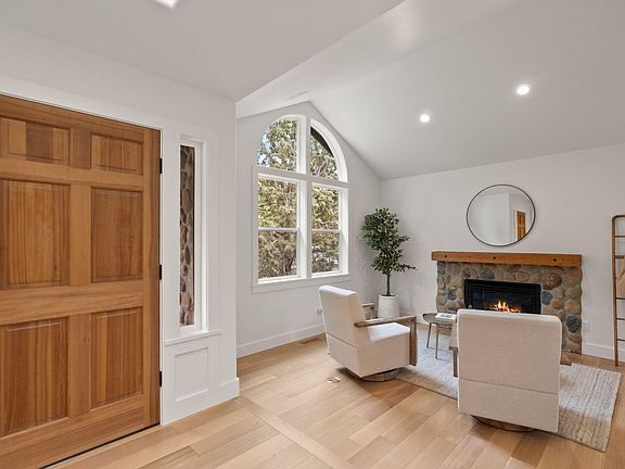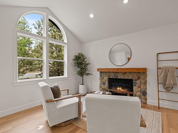 Tucked into one of NW Bend's most sought-after neighborhoods, this bright, beautifully updated home is full of surprises. Upstairs, soak up natural light, cozy up by one of two fireplaces, and enjoy stylish new engineered hardwood floors and a dreamy remodeled kitchen with fresh appliances. Two living areas and an office offer room to spread out. Downstairs, discover two bonus rooms (not in sq ft), including one with a roll-up door—perfect for bikes, art, gear, or your next big idea. Outside, relax on two decks, explore the spacious backyard, and take advantage of massive under-house storage. This home is just minutes from parks, the river, downtown fun, and neighborhood tennis courts. Come see where your next adventure begins!
