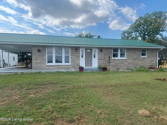 Charming Ranch Home situated on a lovely .07 acre lot.New photos coming in 2 weeks when renovation is completed!!! Great location 7.4 miles from the largest factory in Kentucky-Blue Oval SK Battery Park. Located just 3.5 miles off I-65.This full renovation to include a Carrier HVAC system, new metal roof , new larger gutters, lighting, installation, drywall were replaced.Some new framing and replaced some floor joist.Plus there is a 2 car garage with carport, patio and a very large covered porch on side of the home with awesome sunsets. Has refinished the stunning and rare beech floors.Also lovely new cabinetry, granite counters and kitchen appliances.In addition there is a historic wall sized cabinetry that was installed from the old LaRue County Courthouse in the dining.Handicapped accessible.