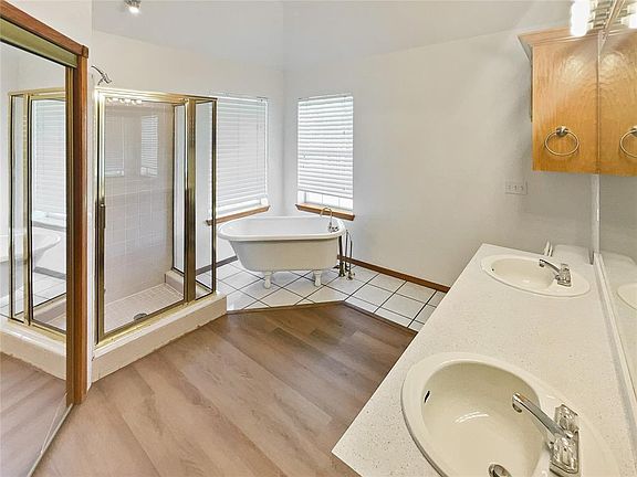 Seller may consider buyer concessions if made in an offer. Welcome to your dream home! This stunning property boasts a cozy fireplace, ideal for chilly nights. Inside, a neutral color scheme and fresh interior paint create an atmosphere of elegance and sophistication. The primary bathroom is a luxurious retreat, featuring double sinks, a separate tub, and shower. Step outside to relax on the covered patio overlooking the fenced backyard, perfect for outdoor enjoyment. Recent partial flooring replacement has refreshed the home, ensuring a modern feel throughout. Don't miss out on this beautiful opportunity!