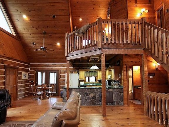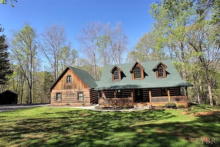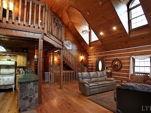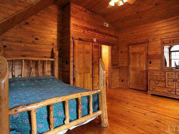 The Bargain of Goode! Price Reduced on this custom built solid wood 6 x 12 Log on Log Home! Tongue & groove 1x6 pine floors. Cathedral ceilings, 3 fireplaces, 3 heat pumps, 2 car garage with 22x14 office & separate entrance above garage. Two main level bedrooms, upstairs loft & master suite with double vanities, walk-in closet, fireplace & Wood bed frame conveys. 40 x 8 Screened porch, 40 x 8 Front Porch, Lower level den with fireplace, office and another bedroom. Detached Storage. New Heat Pump installed on upper level in June. Property adjoins creek & lake. Awesome Home.