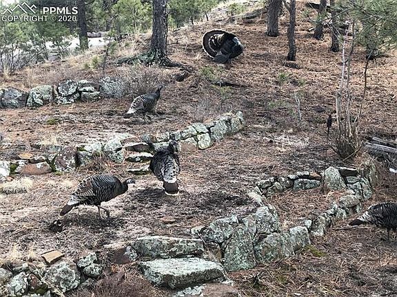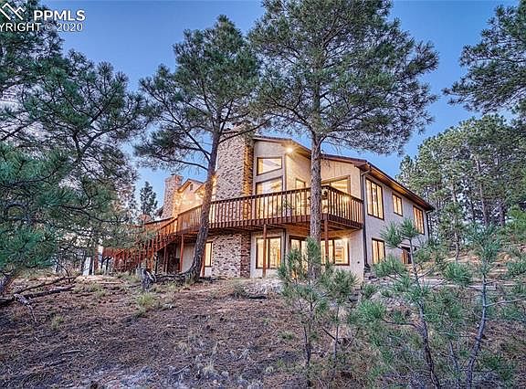 Positioned at the end of a quiet cul-de-sac is a Colorado Mountain Lodge in the heart of Colorado Springs! Watch the Thunderbirds breathtaking moves from your deck during Air Force Academy flyovers- Watch 3 days of hot air balloons float across the sky during Labor Day Liftoff. The master bedroom with its floor to ceiling wood burning fireplace, beamed vaulted ceilings, Pikes Peak, mountain range views & twinkling city lights makes you feel as though youre in the midst of a European getaway! The 5-car heated garage has a Mechanics Inspection Pit in it for the guy who loves to work on or tinker with restoring vintage cars! A secondary storage room, in the garage, has a plumbed sink & shelving for cleanup & all your storage needs. The lower level walkout basement is equally wonderful, another floor to ceiling wood burning fireplace makes you feel as though youre tucked away at a Ski Lodge while watching the snow float down layering the trees in a blanket of white. Just a few steps and youre out into the yard. There are a bathroom and bedroom on this level as well- ensuring a peaceful private stay for any house guest you may have. A flock of Turkeys, who love strutting & showing their feathers are frequent visitors to this carefree yard of tiered planting beds & flagstone pathways. A carpet of sweetly scented Lily of the valley fills the landscape next to the stairs going into the home. Wild iris bloom throughout the beautifully wooded yard. This one owner, custom-built home, has provided decades of magical memory-making with its unique features, breathtaking everyday views, and diverse assortment of wildlife. Come Take a look inside!