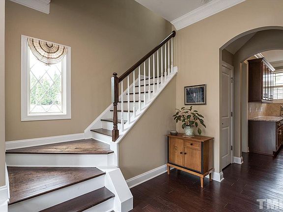 Charming craftsman cottage perfectly poised on premium home site in amazing community! Tree lined streets, pocket parks, salt water pool, playground, walking distance to shopping, dining & PNC Arena! Move in ready home wide plank hardwood floors on main level. Sun-filled family room anchored by fireplace & built-ins. Gourmet kitchen offers gas cook top, double ovens, center island & great cabinet & counter space. Spacious owners' retreat. Nicely landscaped lot with private patio. Hurry!
