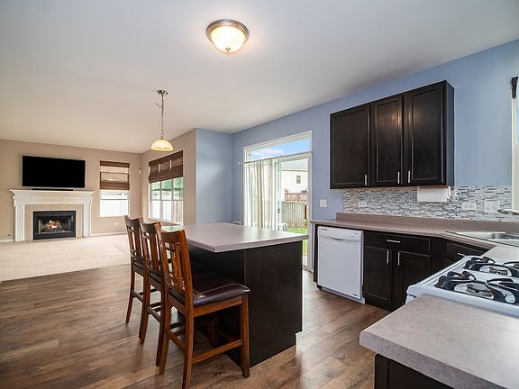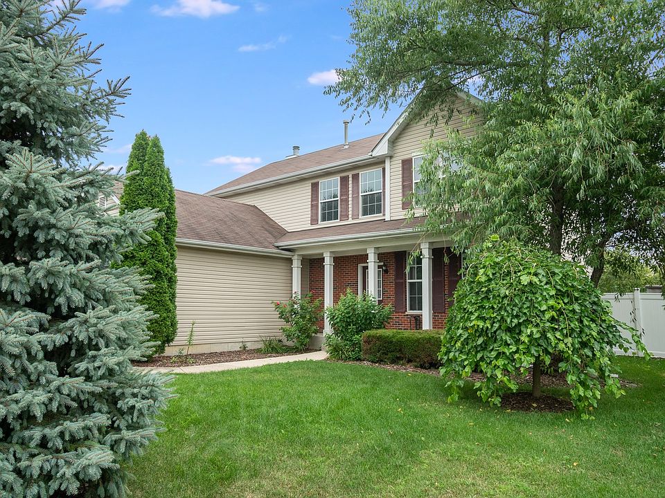 BEAUTIFUL 2 story in Theodore's Crossing with LOTS OF LIVING SPACE! Start your mornings with a cup of coffee on the COVERED FRONT PORCH. Enjoy 9 FOOT CEILINGS throughout the main level. Large OPEN kitchen offers abundant counter space for whipping up culinary delights and center ISLAND with seating for the perfect gathering spot! Dream of hosting big holiday meals? Then you'll love the large SEPARATE DINING ROOM. Cozy up with a roaring fire in the family room's GAS FIREPLACE on those chilly Chicago nights. You'll appreciate the master WALK-IN CLOSET and long vanity...plenty of space to get ready in the mornings. Full unfinished BASEMENT with BATH ROUGH-IN is a blank canvas to create your dream basement. FENCED YARD and stamped concrete patio are perfect for summer BBQs and tossing the ball around with your pup. Don't miss seeing all this GEM has to offer!