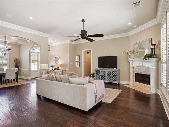 This beautiful, well kept home has so much to offer and is located in a quiet cul-de-sac. Gourmet kitchen with custom cabinets, large center island; built-in bar boasts open faced glass cabinets and a wine cooler. Primary suite features spa tub, separate oversized shower and a stunning 11.5 x 10.5 closet with built-ins and its own island. Mud room; Large Laundry room; Plantation shutters through-out, surround sound in living area. Large brick covered patio overlooking the inviting Saltwater Pool; in addition, there is lots of extra grassy yard area. Gutters, added lights, landscaping in front and back. Flood insurance is not required, property is located in a preferred flood zone. Great location and blue ribbon school district. There is also a community pool and playground.