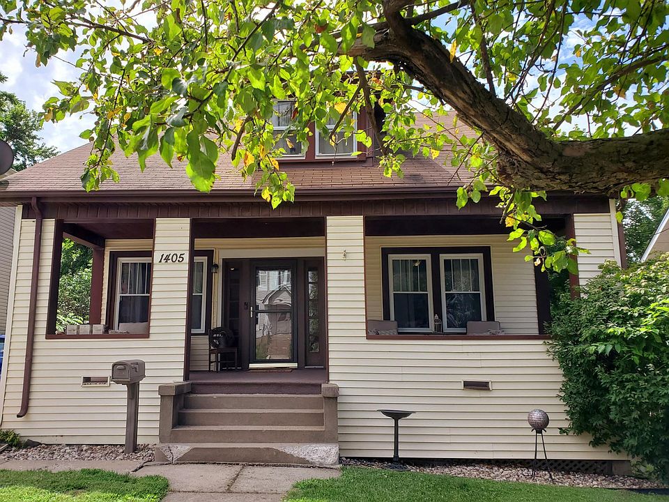 Welcoming 1 1/2 Story featuring beautiful natural woodwork, French Doors, Open front porch, Fenced back yard with a private feel. There are 5 bedrooms and 2 full baths. Off street parking. Close to parks and Downtown. Lots of living space. Includes a one year home warranty. (America's Preferred)