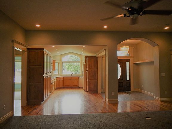 Solid built custom built home with many extras. Brick and stucco accents and large top quality windows. The yard is well manicured with curbing and a sprinkler system with beautiful low maintenance flower beds, mounds and a garden spot. Delightful back patio with shade trees for privacy. Oversized insulated finished garage with a storage area for all the extras. The home has an open layout with a large great room and open kitchen and dining area. The front entrance has a tall stately foyer with tile and beautiful woodwork.. The great room boasts a vaulted ceiling, a nice gas fireplace with granite trim and hearth as well as triple glass doors to enjoy the yard. The kitchen has an amazing large window that allows lots of light and custom built alder cabinets and pantry,and solid hardwood floors. The bedrooms are large and have lots of closet space. The large vaulted master bedroom has lots of windows letting in the natural light as well as a walk in closet with dividers and shelving. The master bath has a great shower and vanity and storage closet. The laundry/mud room just off the garage have lots of cabinets for storage. This home was built by a top builder with many upgrades in the trim and finishes. This home is priced way below the cost to build.