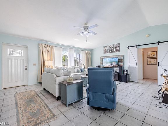 Gulf-access Cape Coral pool home with a BRAND NEW ROOF in January 2023 with just ONE BRIDGE (one of the highest in Cape Coral) between you and open water! THIS HOME IS NOT IN A FLOOD ZONE! The property features a composite dock with a 10,000 LB boat lift, soaring high vaulted ceilings in the open concept kitchen and living room, 2-car attached garage. The kitchen boasts white appliances including a brand new range, modern tile backsplash, and ample storage. The backyard includes a fiberglass pool and spa overlooking the canal. A pool cage replacement has been arranged, but can be cancelled if the buyer wishes. Located within 8 minutes of Walmart Supercenter, Publix Super Market, and dozens of dining options.